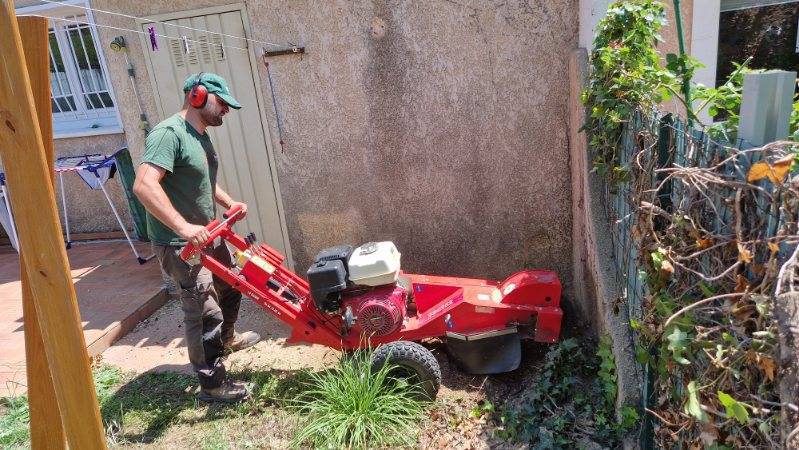 En effet, il souhaitait agrandir sa terrasse mais la souche d’un arbre abattu était gênante pour effectuer ces travaux d’aménagement extérieur.